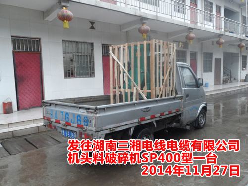 機頭料破碎機400型專業解決機頭熱塑料的回收再利用,出線機擠出的生料,則能回收直接利用,熱冷塑料破碎顆粒粒度4毫米左右。機頭熱塑料回收利用率高,是電線電纜廠機頭熱塑料回收利用的主要設備。